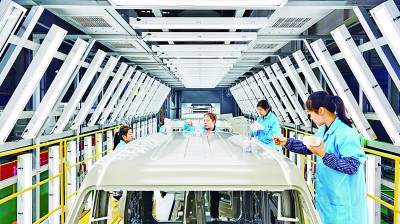 2022年3月31日,江西省赣州经开区新能源汽车科技城教育园区的高职毕业生在一家汽车制造企业车间内工作。朱海鹏摄/光明图片