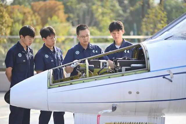 职业学校老师向学生们讲解飞机通讯与导航系统检查方法