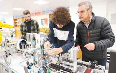 在面积约650平方米的工坊内,记者见到了塞图巴尔理工学院教授、鲁班工坊负责人若瑟·卢卡斯。据他介绍,鲁班工坊的设备与现代先进制造及人工智能技术衔接紧密,具有全球相关技术的前沿水平。“毫无疑问,中国的机械设备和操作能力都处在国际领先水平。”